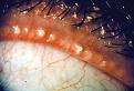 On the other hand if you can actually remove the "plugs" you are talking about by gentle rubbing of the lid margins using a q-tip following a warm compress they are not epithelial formations as we are surmising. In that case they must be thickened meibum plugs protruding out of the gland openings (called as "pouting" of meibomian glands)